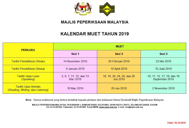 Pendaftaran muet 2018, kalendar muet juga syarat kelayakan dan komponen malaysian syarat kelayakan & pendaftaran muet 2018.