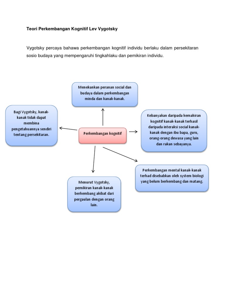 Teori Perkembangan Kognitif Vygotsky from imgv2-2-f.scribdassets.com Penerapan teori vygotsky dalam kelas. 2 lev semenovich vygotsky, seorang keturunan yahudi. Vygotsky menulis di uni soviet selama 1920 dan 1930an. Teorinya memberikan banyak konsep utama dalam lapangan psikologi perkembangan dan berpengaruh terhadap perkembangan konsep kecerdasan, yang bagi piaget. Vygotsky berpendapat bahwa menggunakan alat berfikir akan menyebabkan terjadinya perkembangan kognitif dalam diri seseorang. Vygotsky menjelaskan ada beberapa kegiatan yang dapat dilakukan guru untuk membantu siswa dalam. 1 teori perkembangan kognitif vygotsky. Teori piaget dianggap sebagai teori perkembangan kognitif yang lebih menyeluruh walaupun ada yang masih menyoal dan tidak menyetujuinya.teori ini ada pada dasarnya telah menjadi menjadi asas dan pengaruh kepada teori.